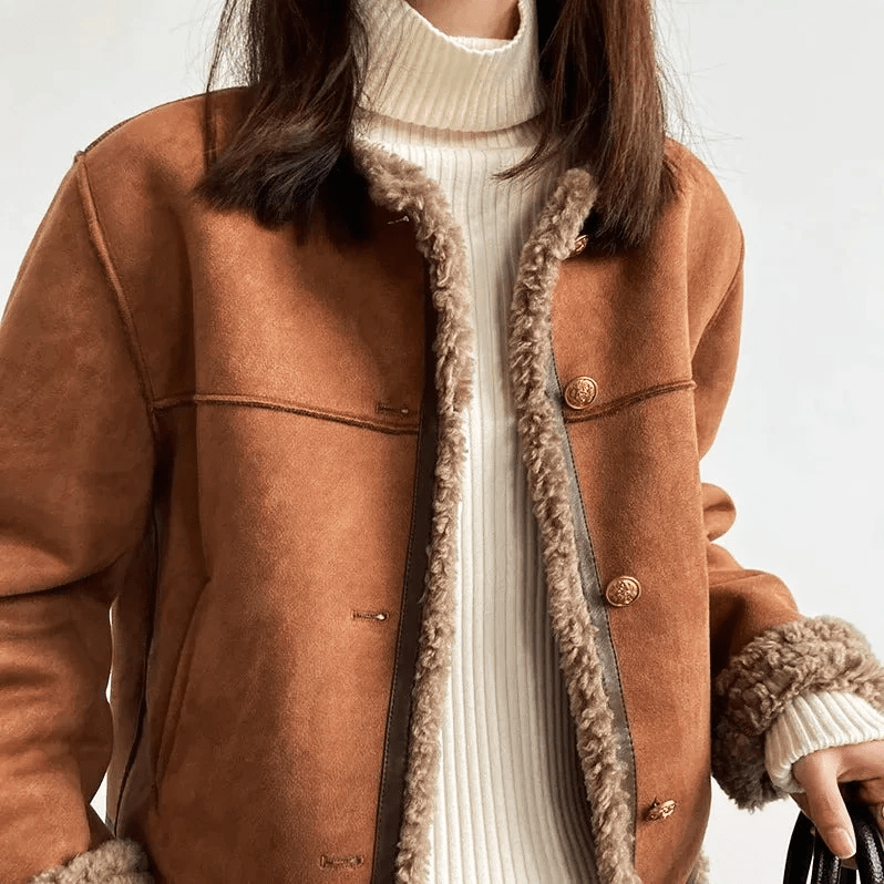 Hailey Elegant Sherpa Lined Jacket - Brown / XS