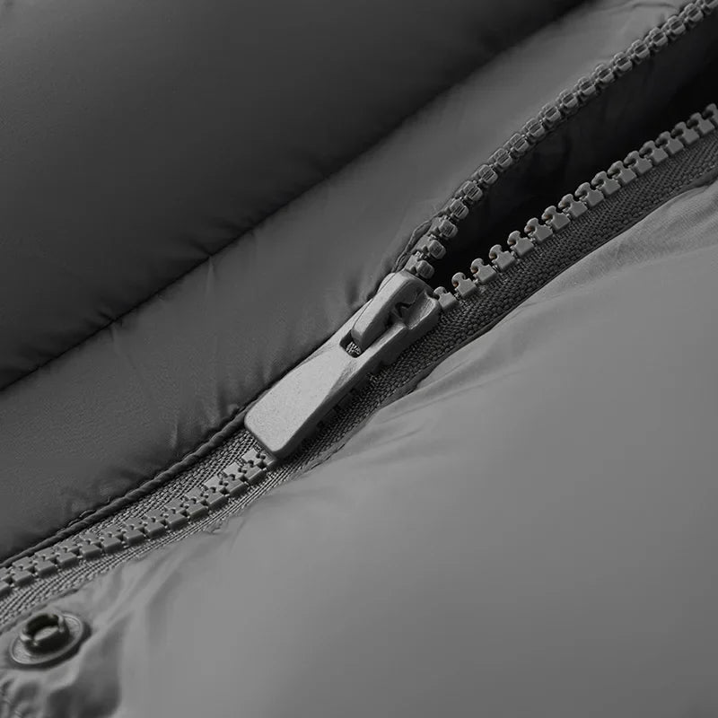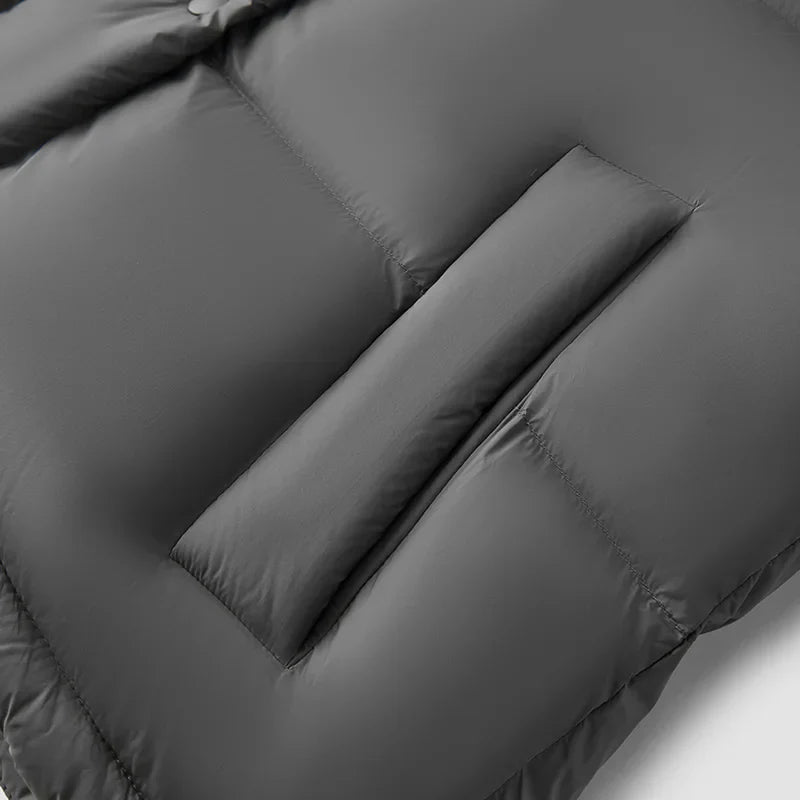 Stay insulated and dry in this winter down vest, built with a water-resistant nylon shell and detachable hood for adaptable wear. Designed to handle cold mornings and brisk city days with effortless practicality.