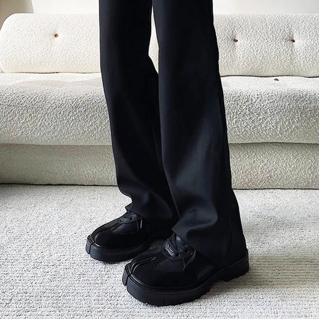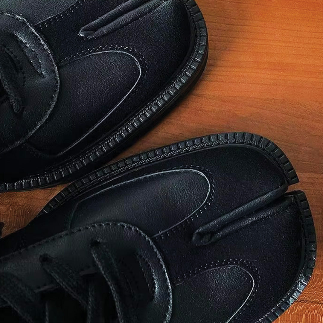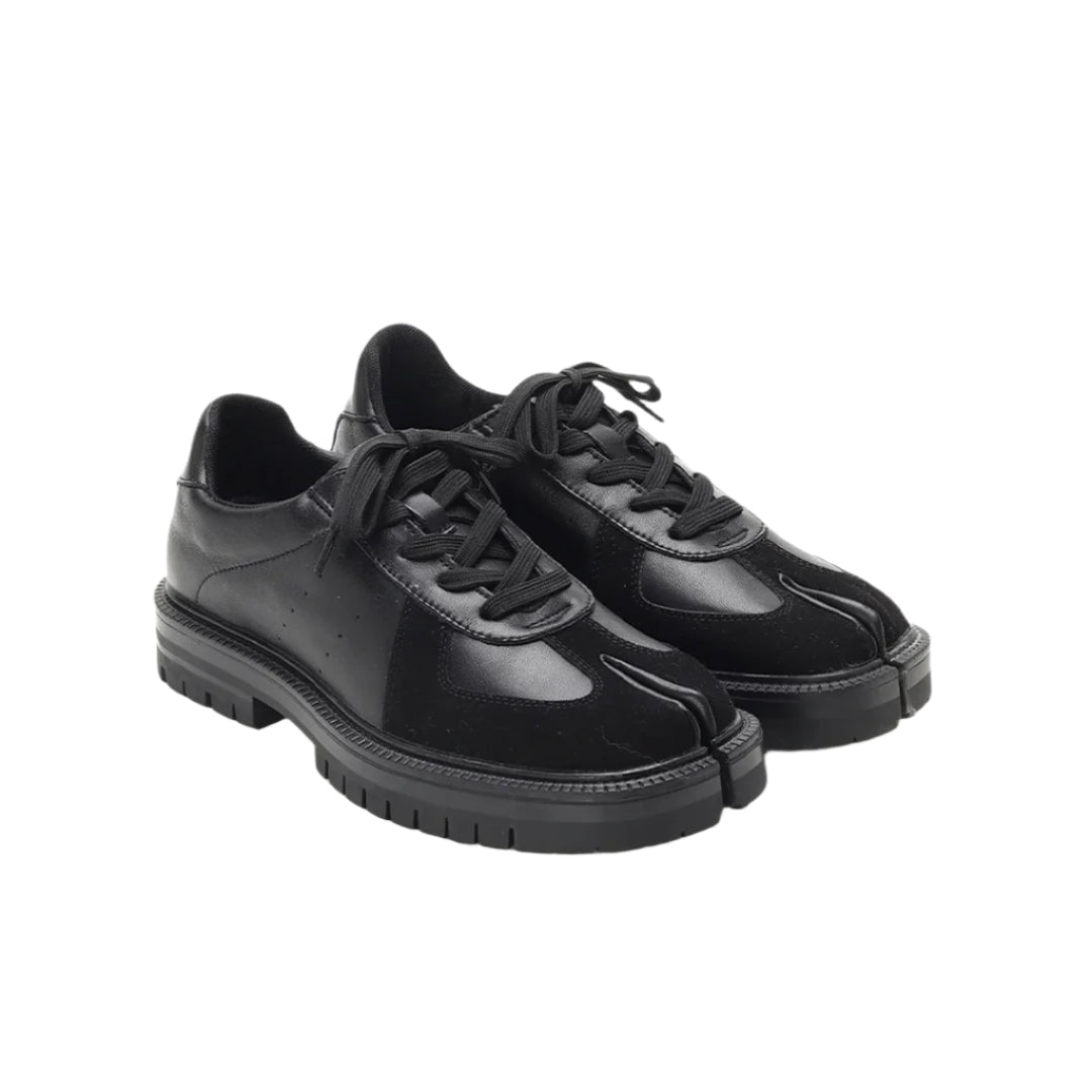 These tabi sneakers redefine contemporary style with their iconic split-toe silhouette. Crafted from supple leather and suede, they merge traditional craftsmanship with a forward-looking design built for comfort and distinction.