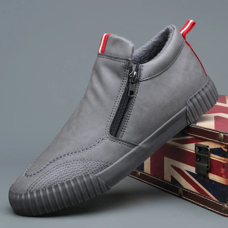 Lined with plush warmth and shaped from smooth leather, these high tops keep comfort close without losing their edge, plus these can be wear on without socks. The double zipper slip-on design makes them quick to wear, holding their form through long seasons of steady use.
